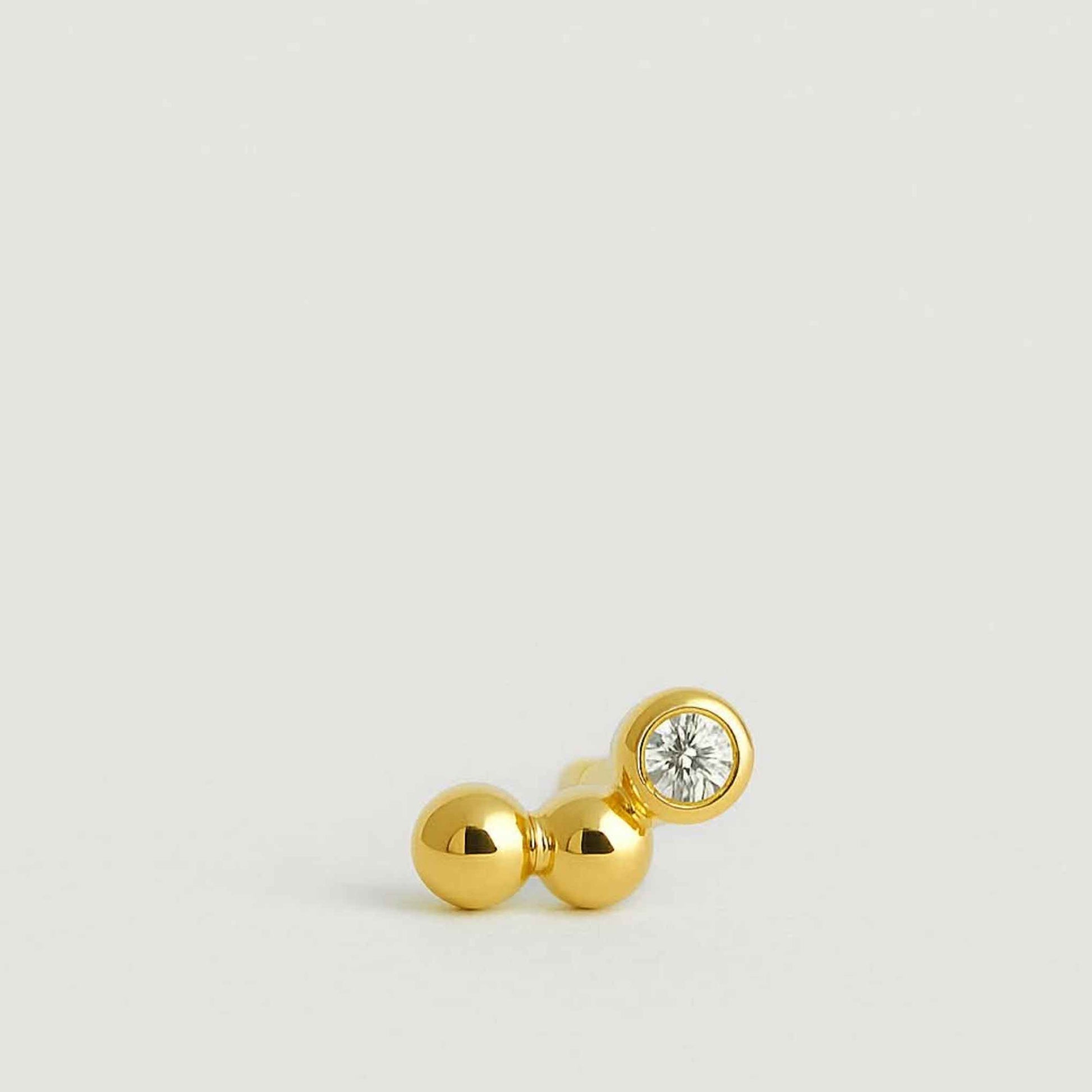 Videreudviklingen af den populære og klassiske 3 dot ørering er denne 3 Dot Diamond, som giver dit look et mere eksklusivt udtryk. Lad din stil tale for sig selv med denne elegante guldørestik, formet af tre let forskudte sammenhængende kugler, hvor den ene kugle er skiftet ud med en diamant. Enkelt og tidsløst. Det rene, minimalistiske design giver et moderne udtryk, der passer til både hverdag og fest. En tidløs detalje skabt i ægte guld og laboratoriefremstillet diamant – enkel, let og fuld af skandinavisk ro.